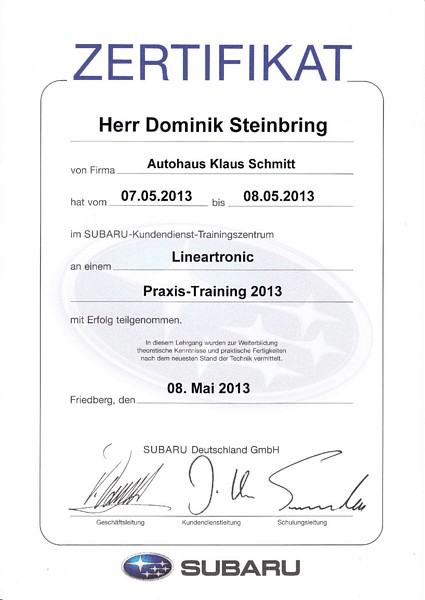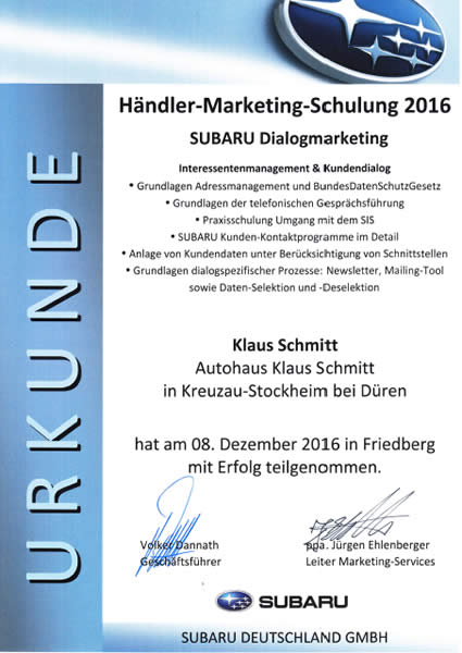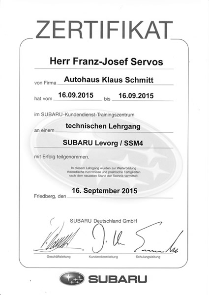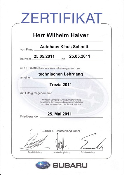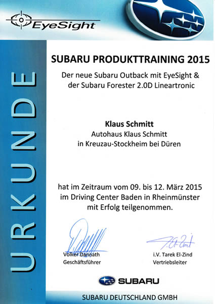 Das Autohaus Schmitt betreut Ihren SUBARU kompetent und zuverlässig. Trezia, Justy, Impreza, XV, Levorg, Forester, Legacy und Outback werden von uns fachmännisch gecheckt und gewartet. Mit mehreren Sportlern der Modellreihe WRX und WRX STI in der Kundschaft kennen wir uns auch mit diesen Fahrzeugen der SUBARU-Modellpalette sehr gut aus, betreuen selbstverständlich auch modifizierte Kundenfahrzeuge und bieten ganz individuelle Fahrzeug-Checks.